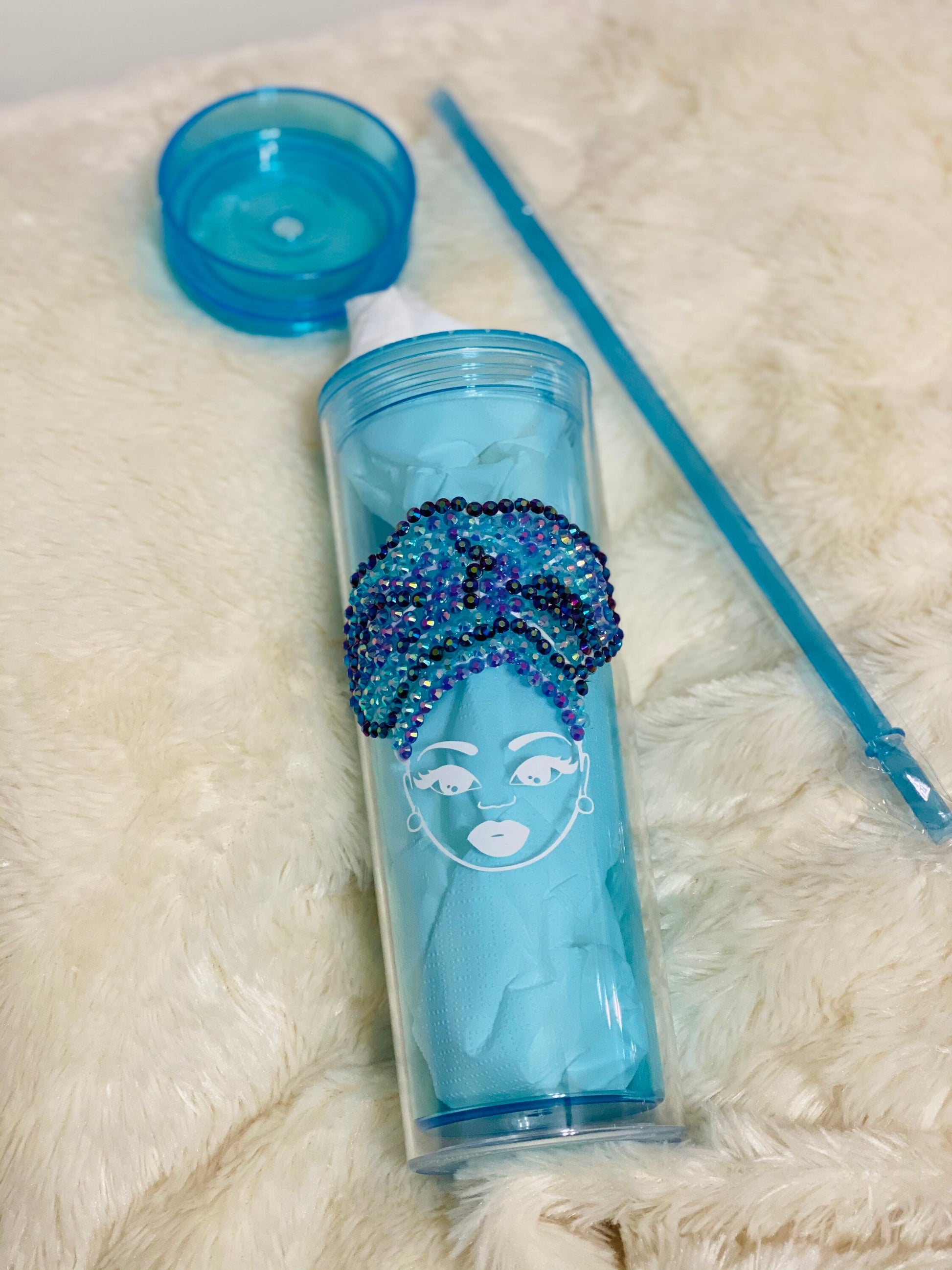Created with care, each of our one-of-a-kind tumblers is handcrafted and dazzled, with variations in rhinestones for a truly unique look. This 20 oz. BPA-free tumbler is available in clear, teal blue, or purple, with a matching straw included.