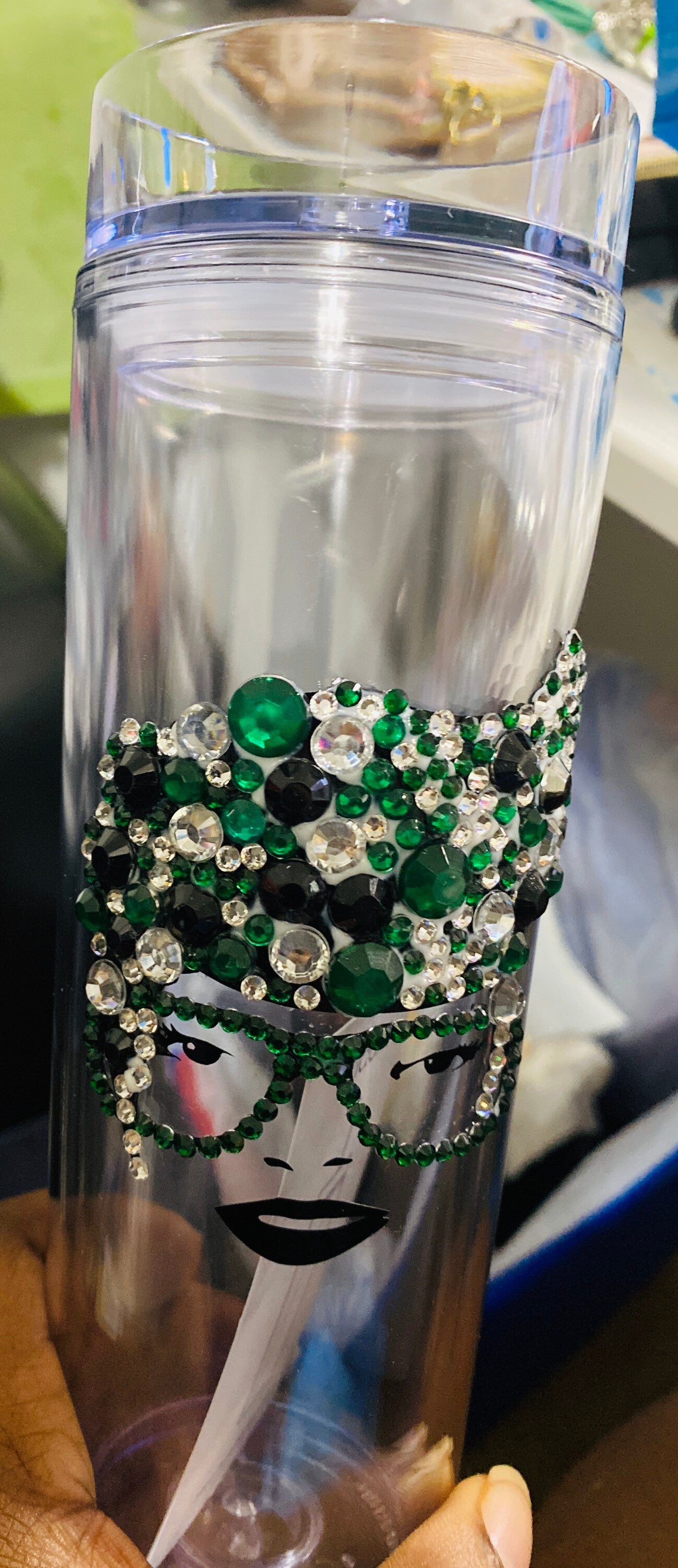 Materials: Rhinestones, glue, vinyl, and tumbler.
