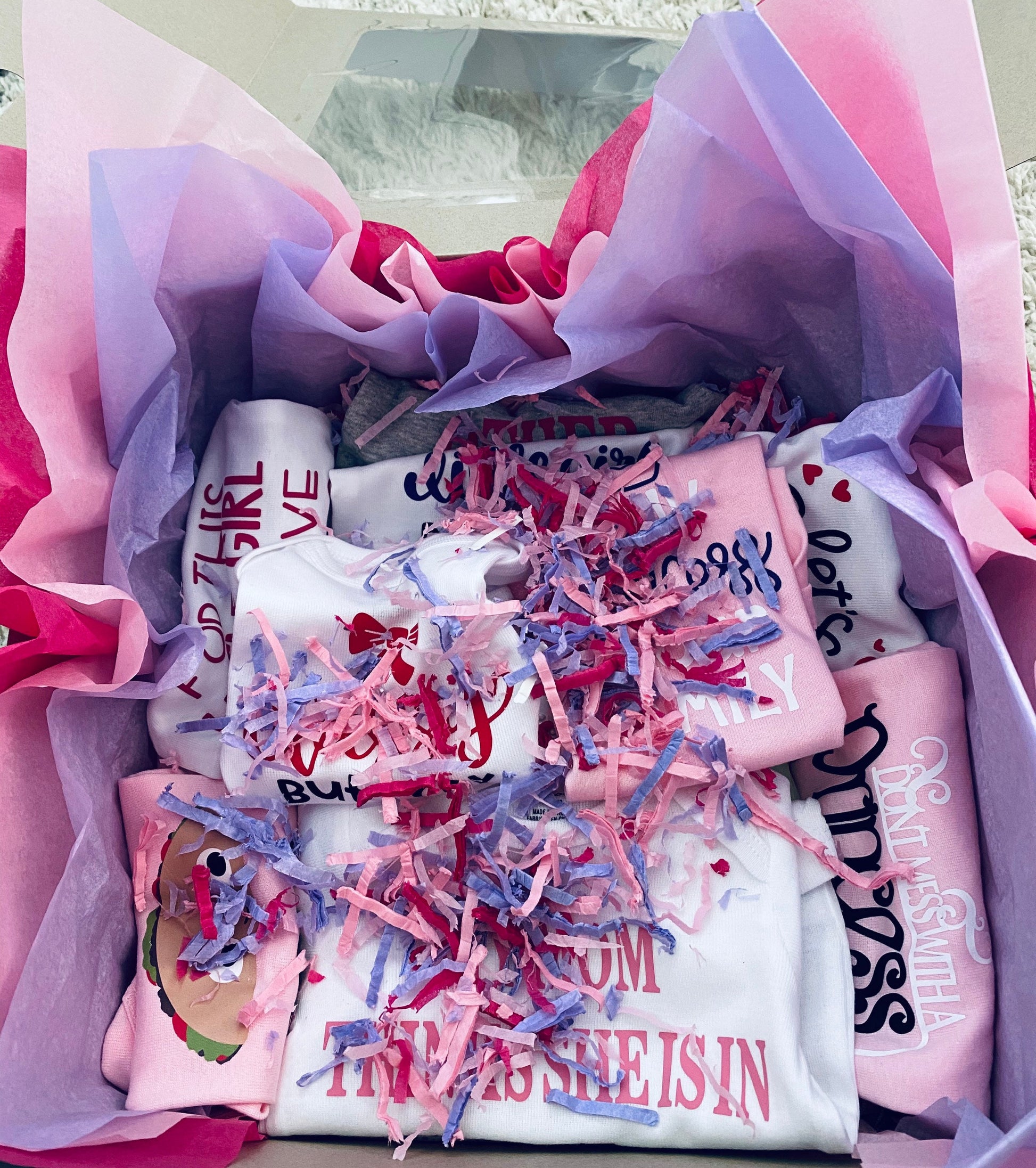 This adorable bodysuit is a great gift for any baby. Each item is custom made and packaged with love and care. These bodysuits are the perfect gift for any baby shower, gender reveals, or surprise birth announcement to family and friends.