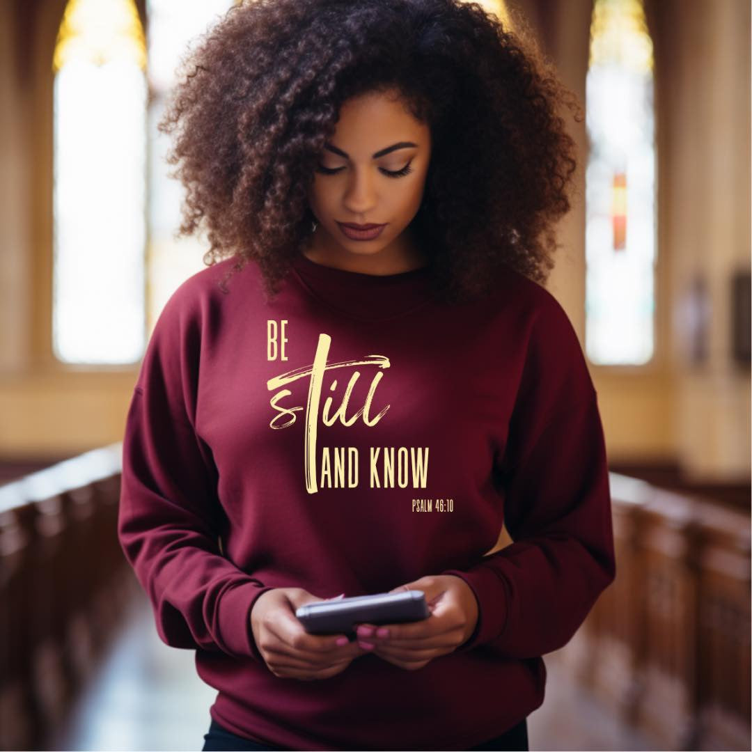 Be still and know shirt with Gold Writing