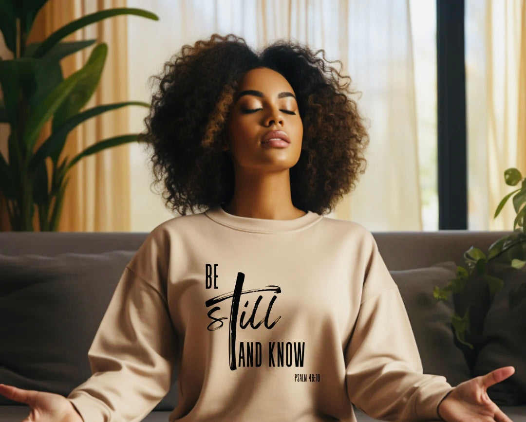 This stylish Be Still and Know shirt is made of 100% cotton material, for maximum comfort and durability. The design features the classic phrase "Be Still and Know That I am GOD," making a great statement. Show your faith and fashion with this unique, high-quality product.