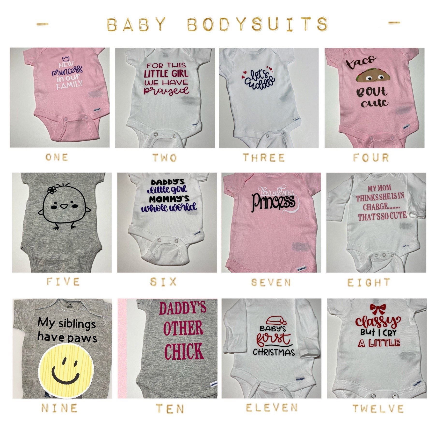 This adorable bodysuit is a great gift for any baby. Each item is custom made and packaged with love and care. These bodysuits are the perfect gift for any baby shower, gender reveals, or surprise birth announcement to family and friends.