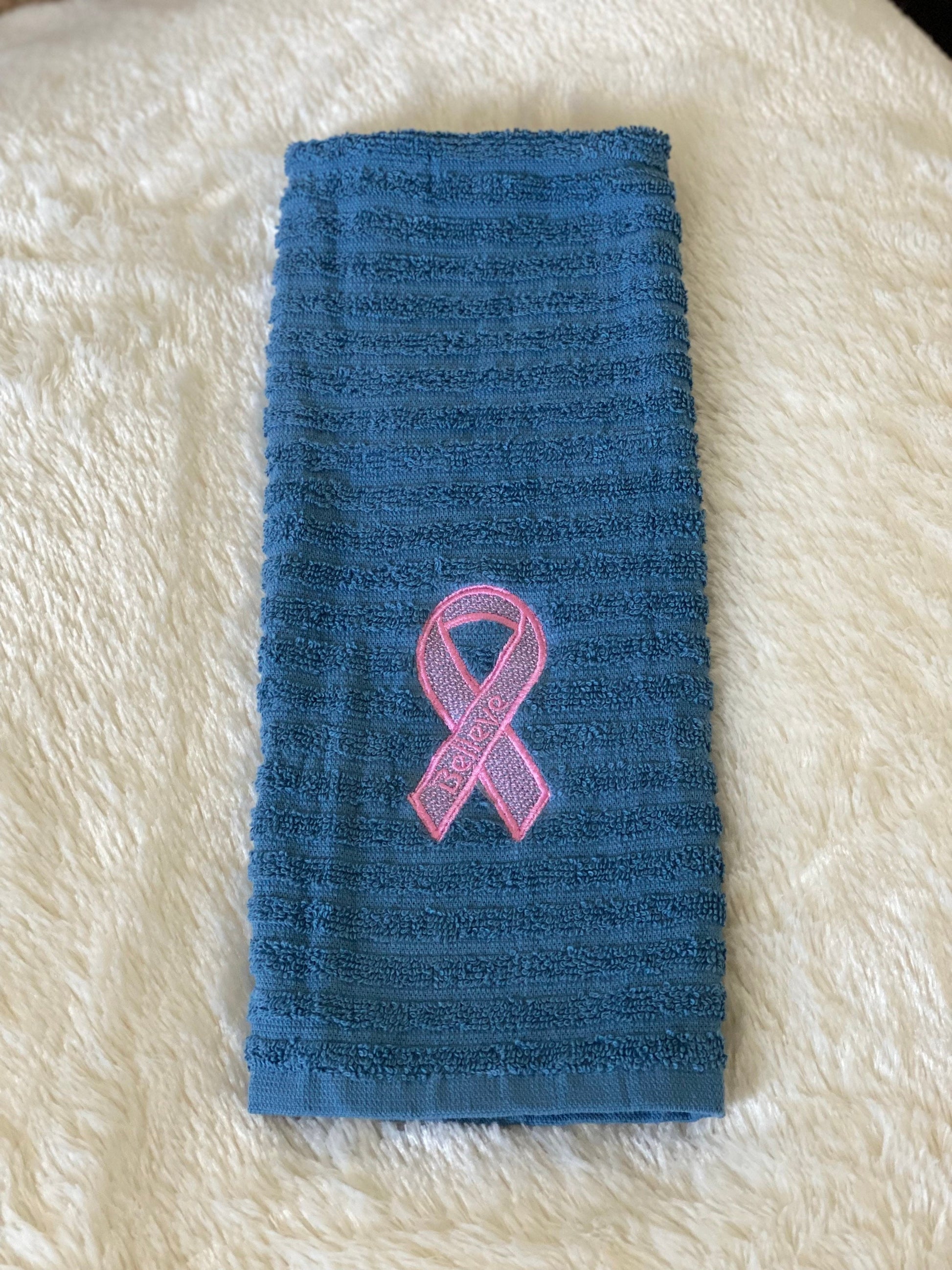 These hand towels can be created for any type of cancer. Please choose a hand towel color and pick the color ribbon of the cancer that you are requesting. If you do not see the particular cancer you are looking for, please do not hesitate to reach out to us and we will be able to assist you with your request.