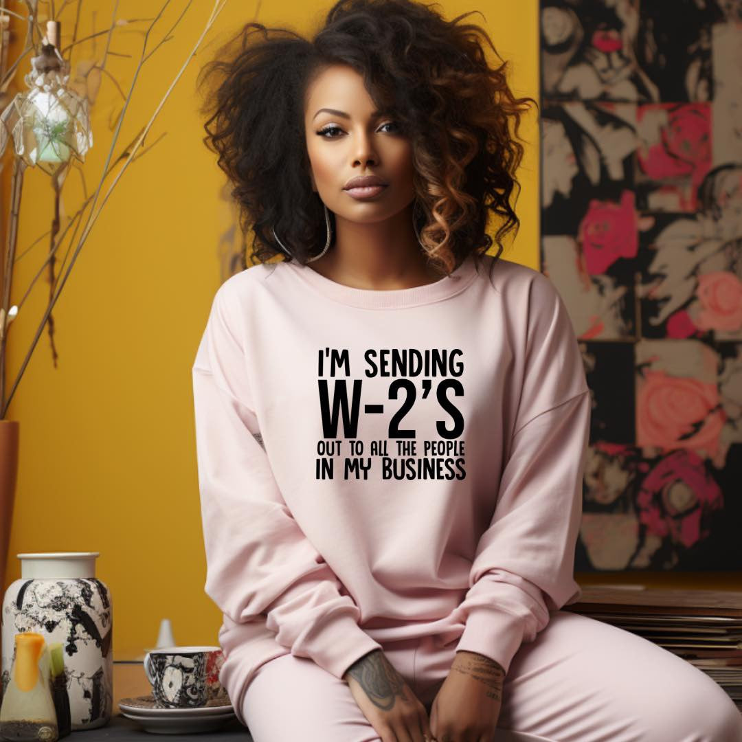 I'm sending W-2's to y'all in my business shirt - White lettering
