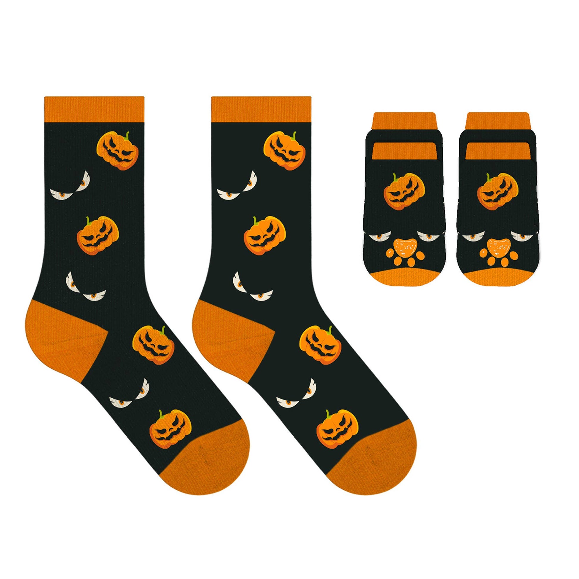 A fun and giftable set featuring one pair of socks for the pet parent and one for their furry companion. Made from soft, stretchy polyester-spandex blend for a comfortable fit. Designed to fit most small dog breeds and adult humans. Perfect for impulse gifting, holidays, or pet-themed displays.